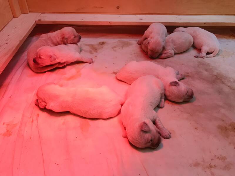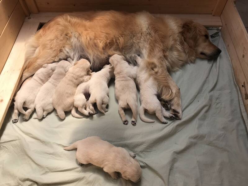 Gisteren is Sharlie bevallen van acht gezonde puppy's.