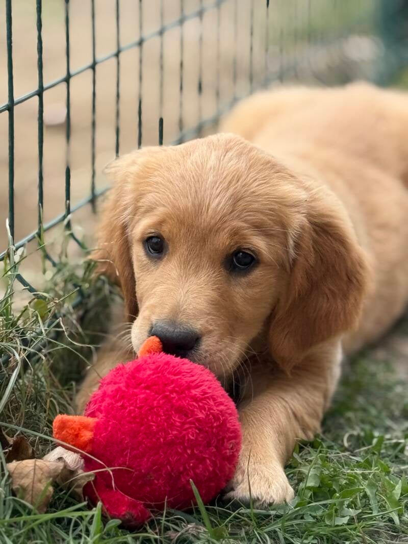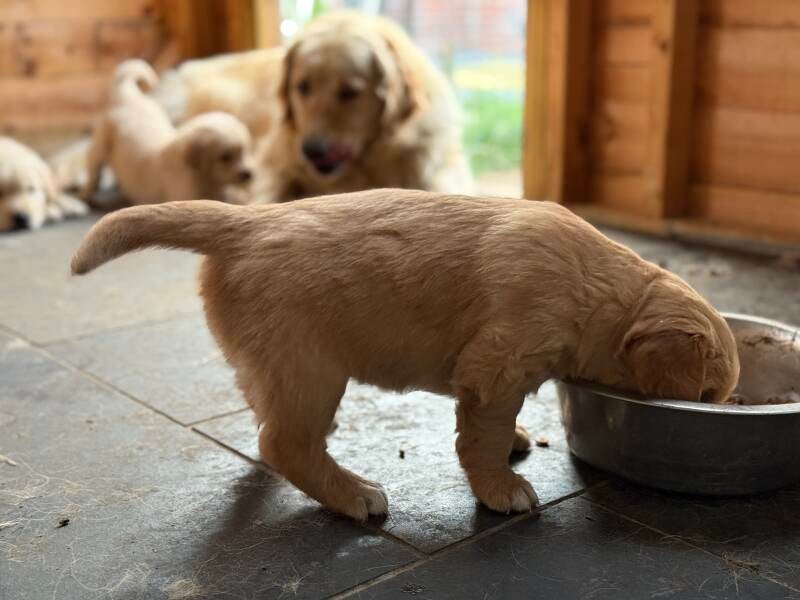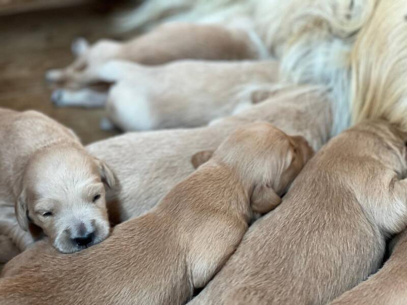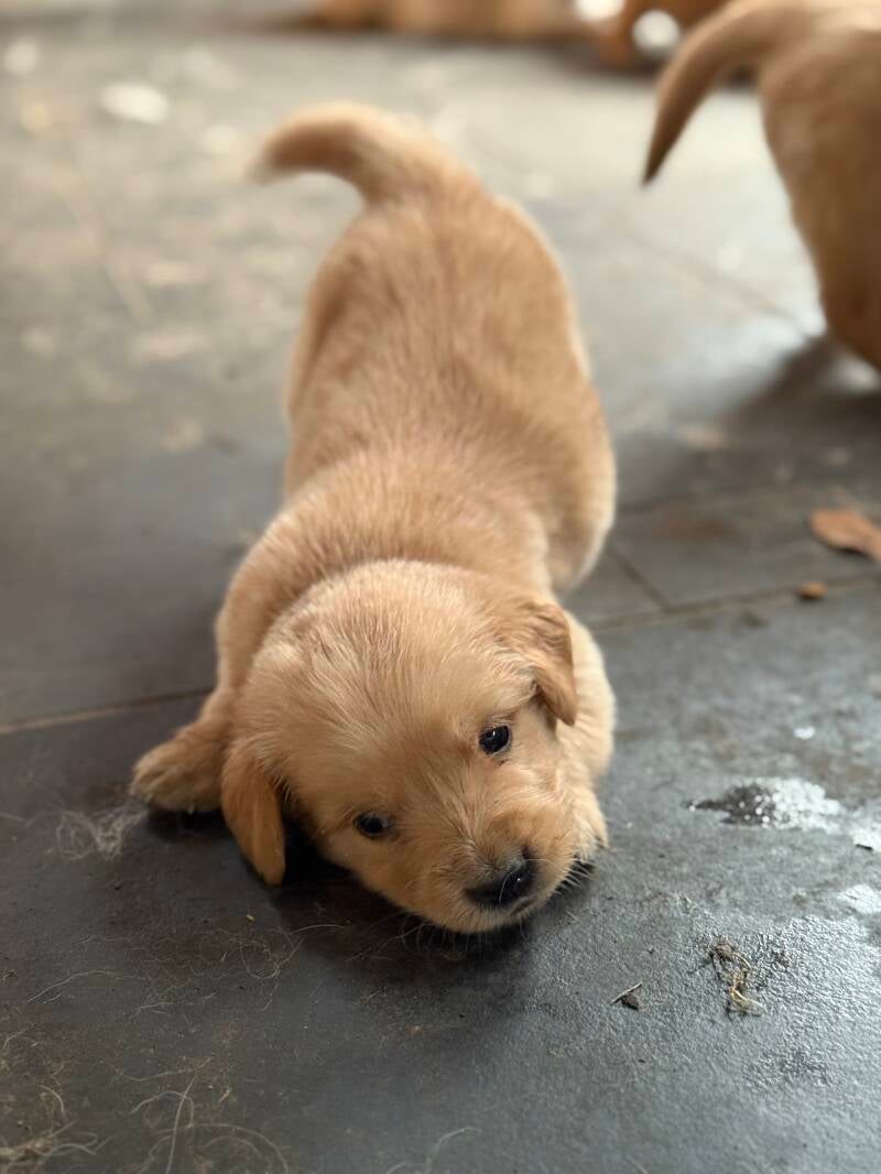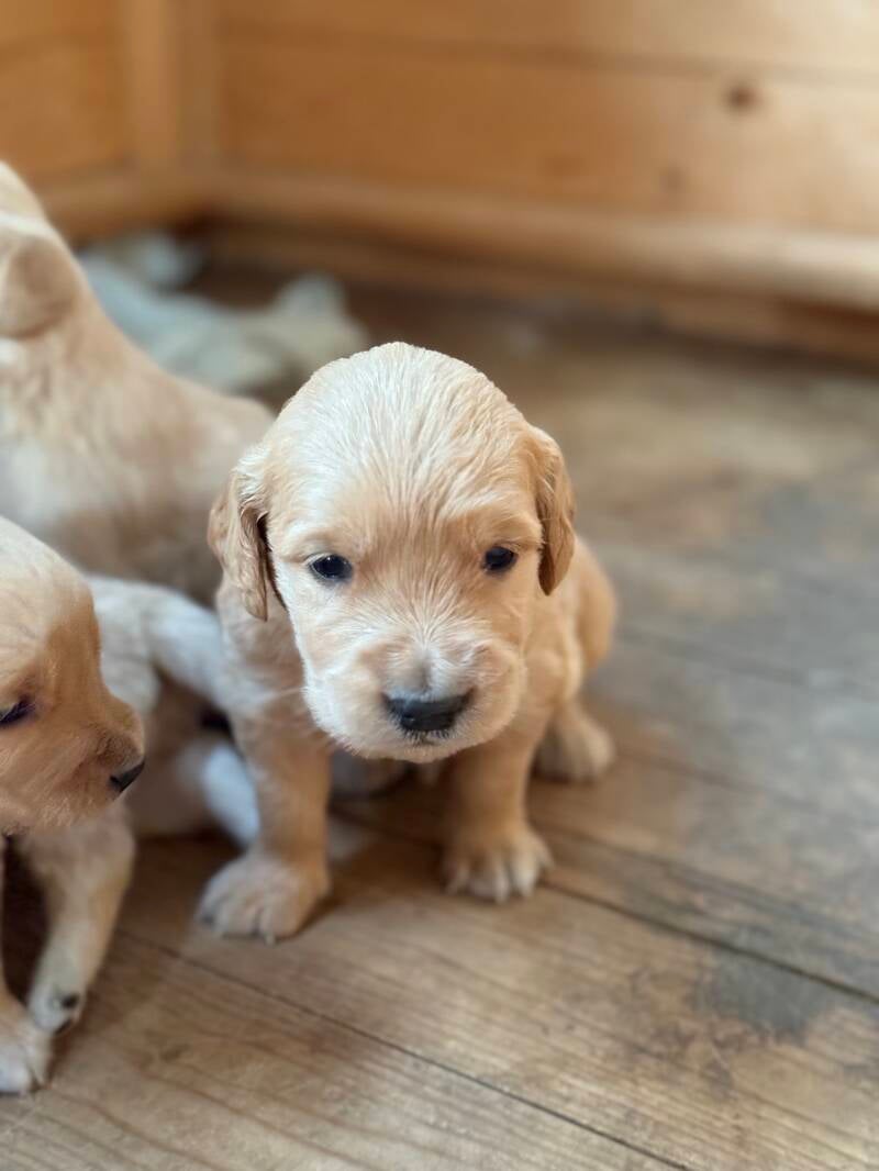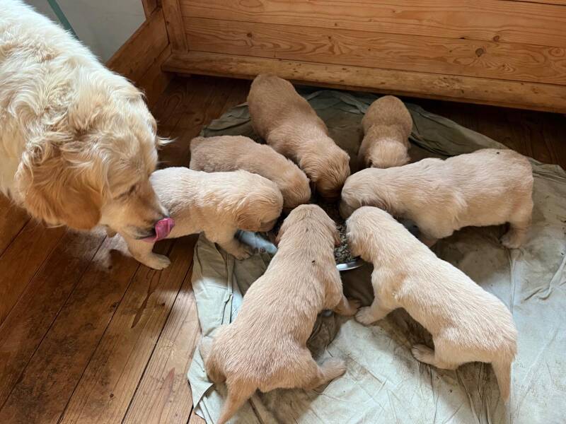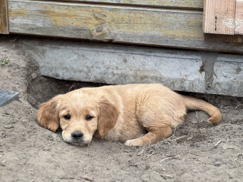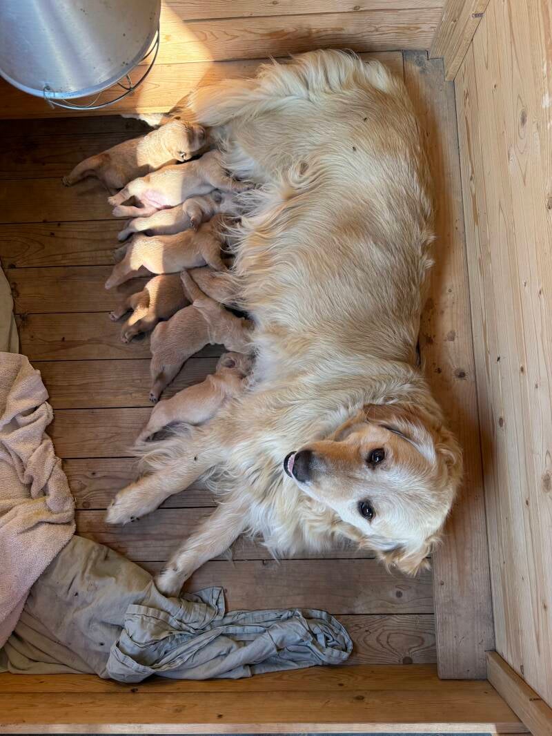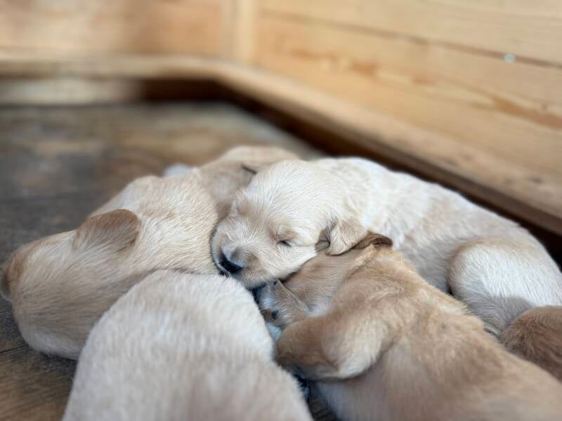 In juli verwachten we met veel enthousiasme een nieuw nestje Golden Retriever pups van onze zachte Sharlie. De vader is Rooney (Elkshead Arran to Think Twice), een charmante, werklustige reu met een uitgebalanceerd karakter.