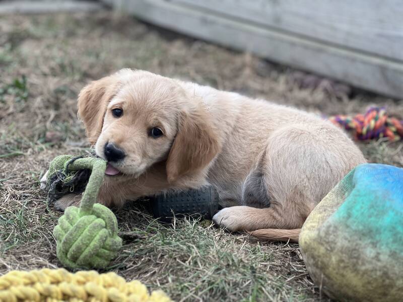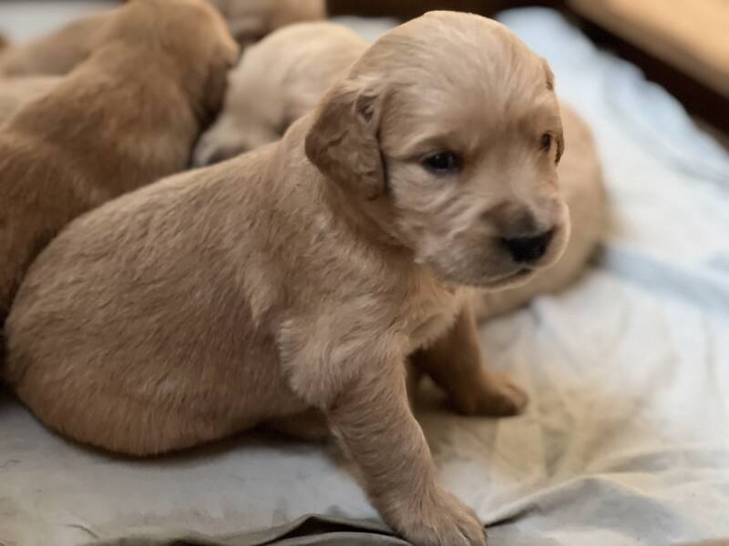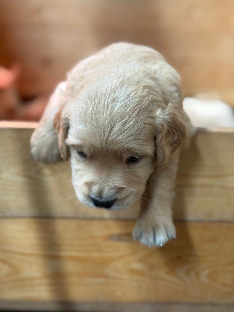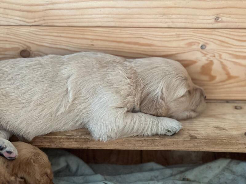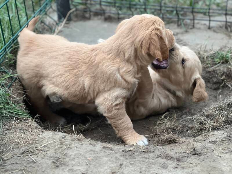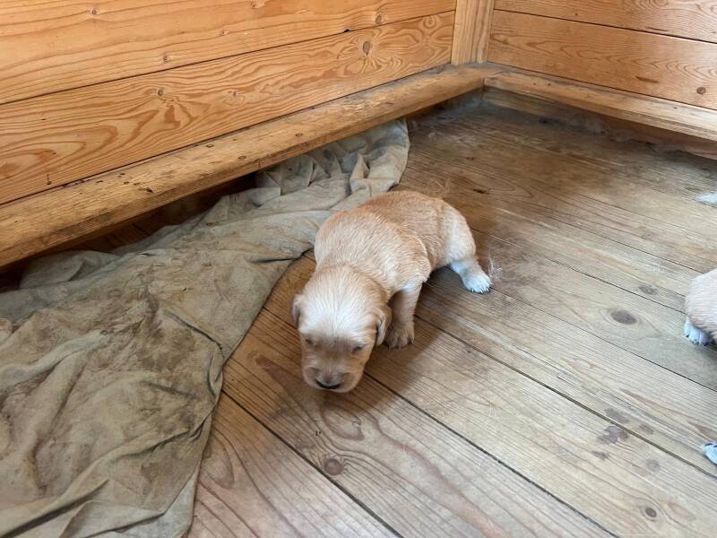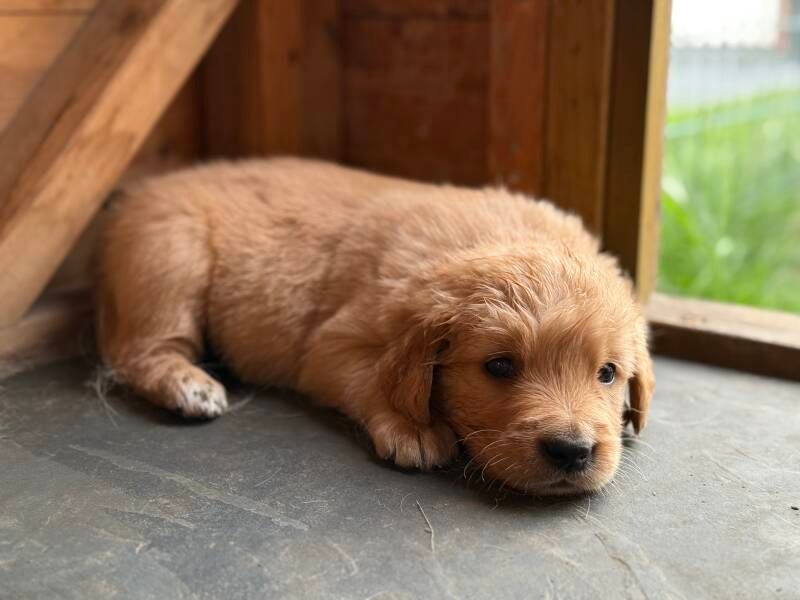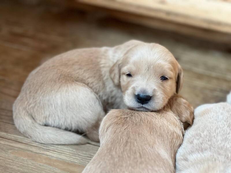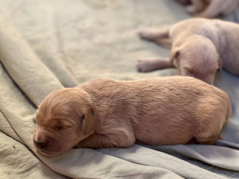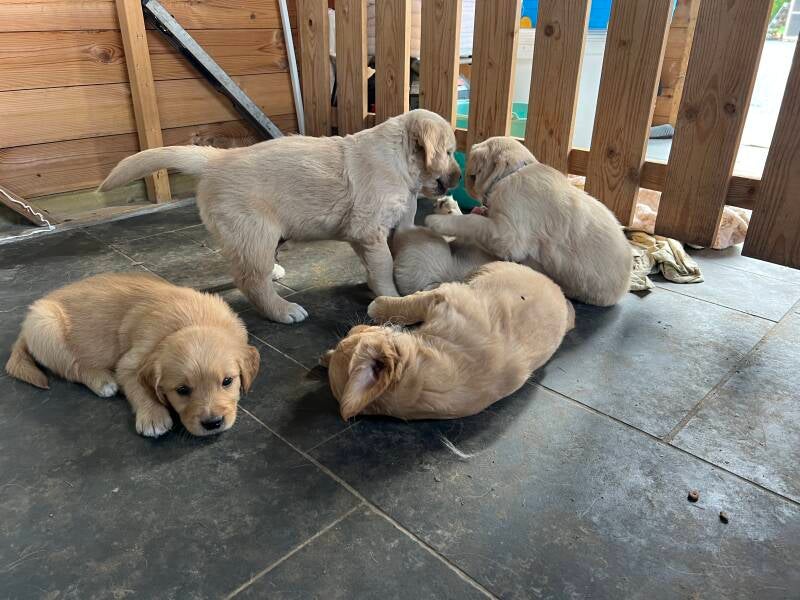 In juli verwachten we met veel enthousiasme een nieuw nestje Golden Retriever pups van onze zachte Sharlie. De vader is Rooney (Elkshead Arran to Think Twice), een charmante, werklustige reu met een uitgebalanceerd karakter.