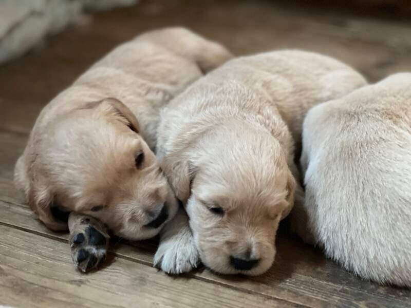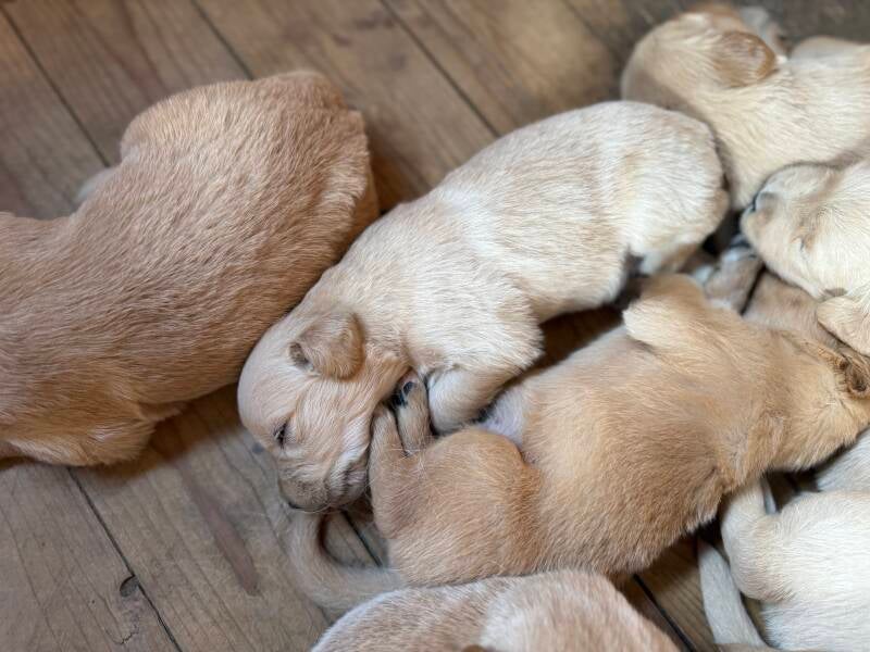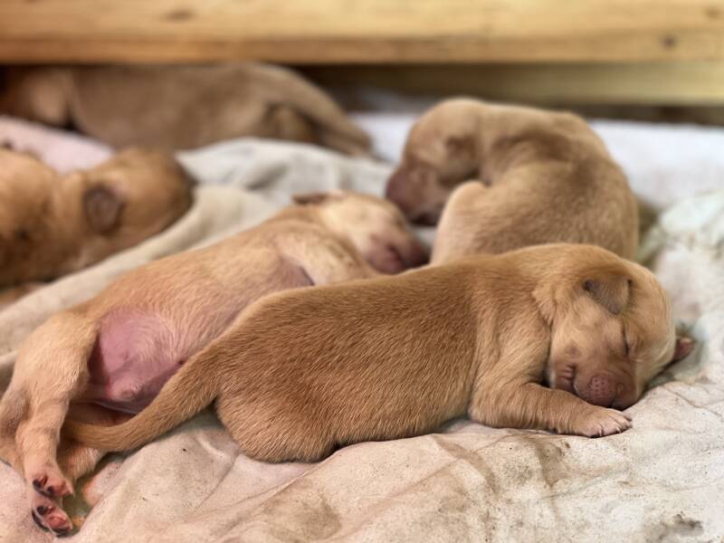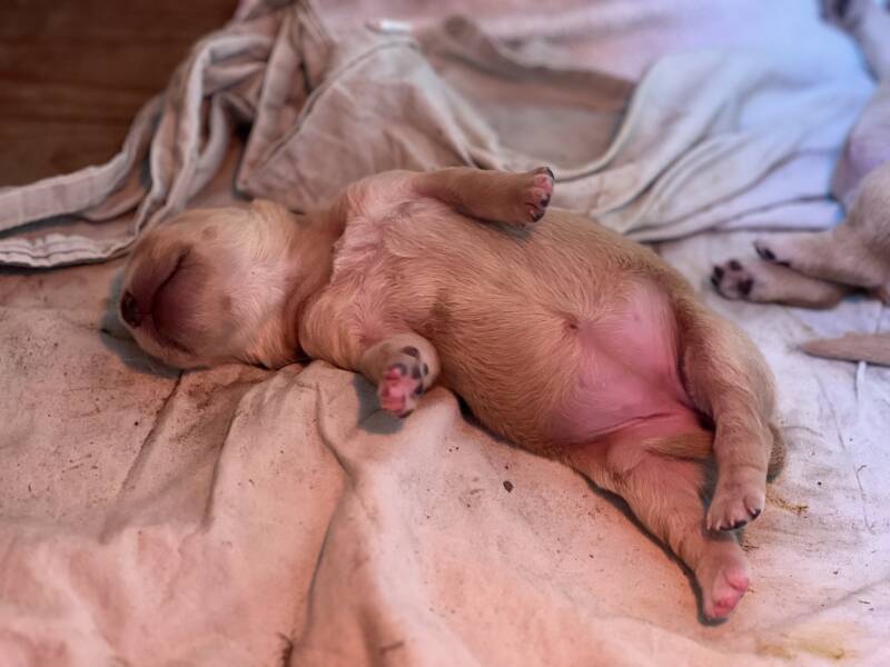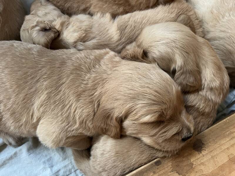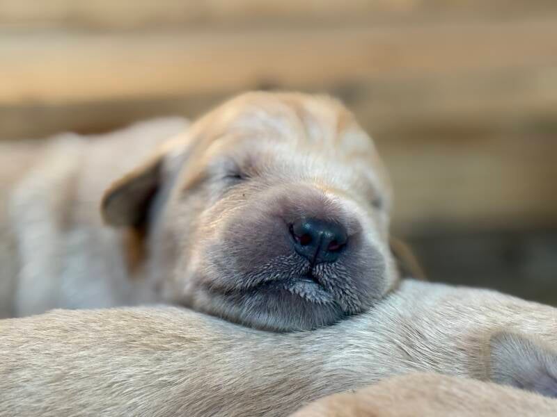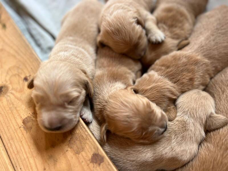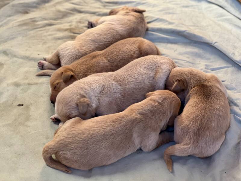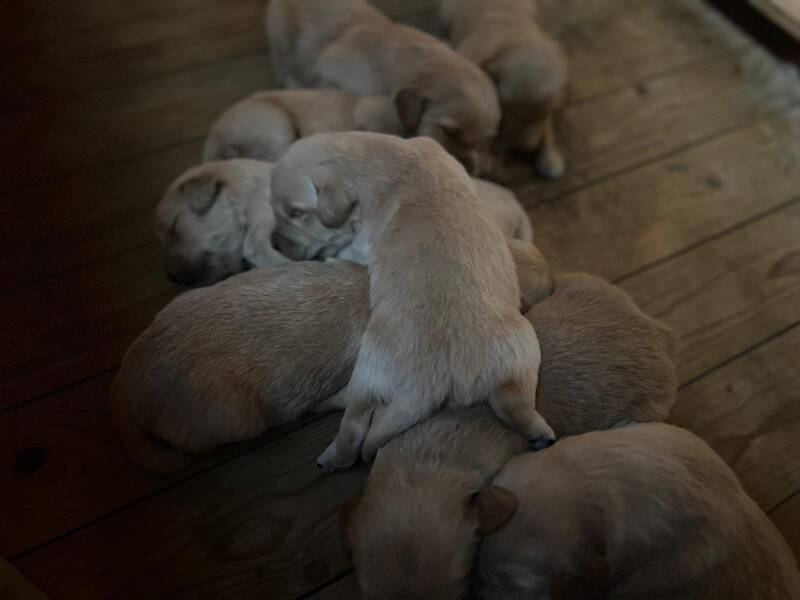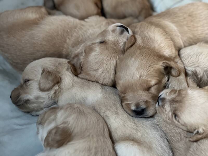 Onze pupjes genieten met volle teugen van het leven: samen liggen soezen, warm tegen elkaar aan. Sommigen kruipen al voorzichtig op ontdekking, anderen houden het liever gezellig dicht bij elkaar.
