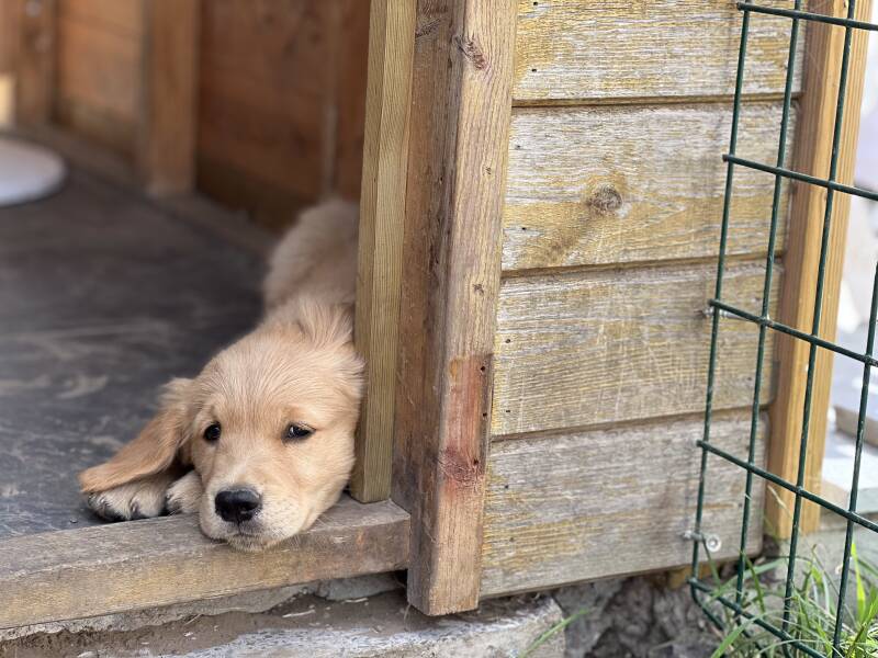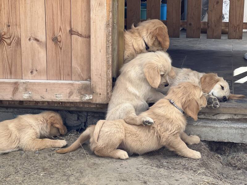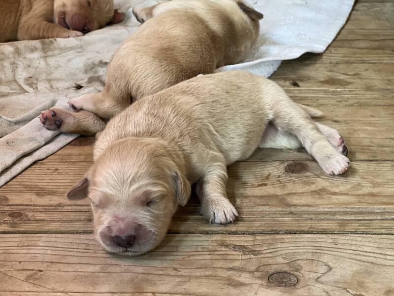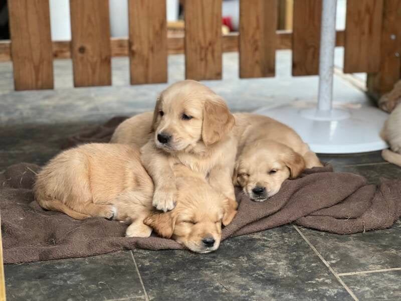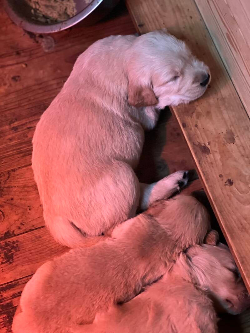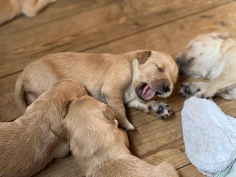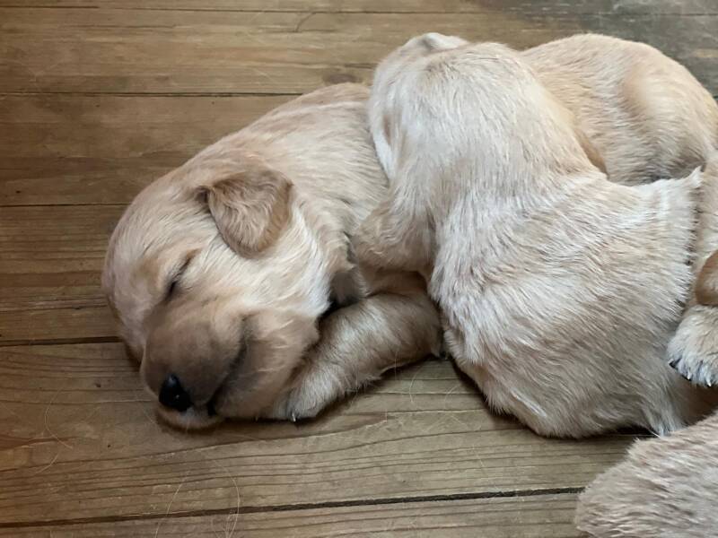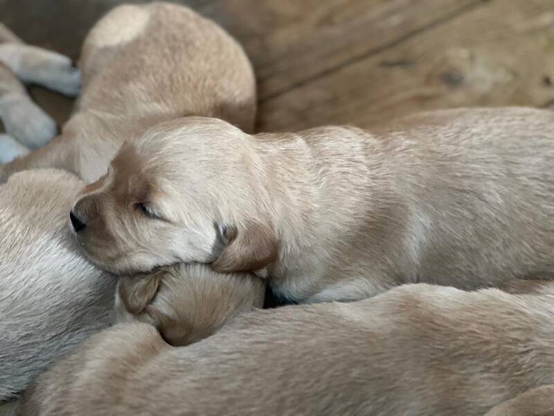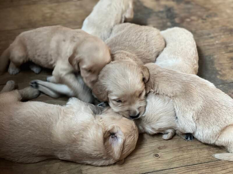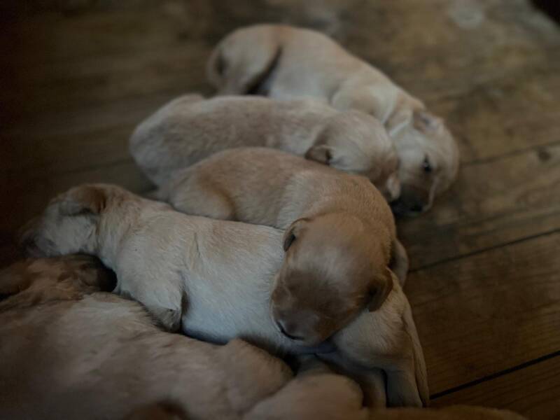 Onze pupjes genieten met volle teugen van het leven: samen liggen soezen, warm tegen elkaar aan. Sommigen kruipen al voorzichtig op ontdekking, anderen houden het liever gezellig dicht bij elkaar.