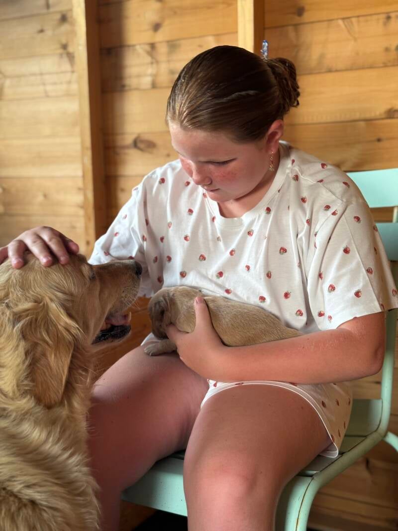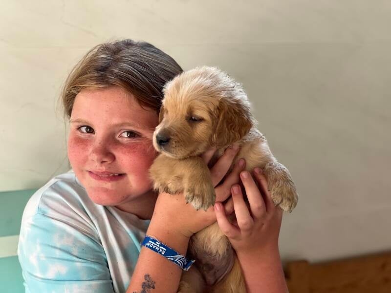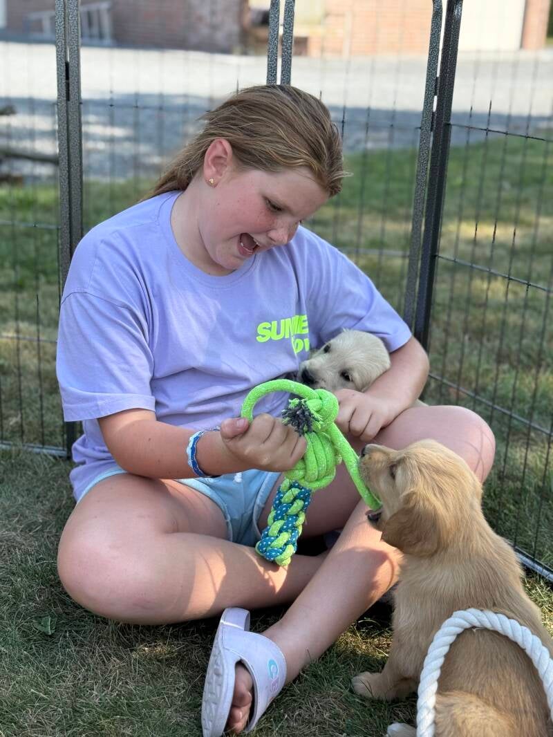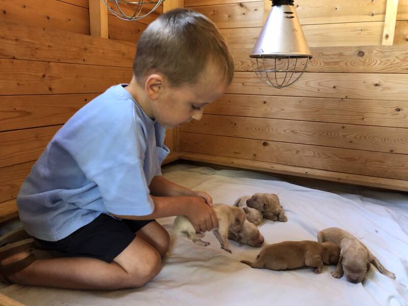 Vandaag kregen ze ook al knuffels van onze jongste helpers. Zo mooi om te zien hoe voorzichtig en liefdevol ze met de pupjes omgaan. De eerste bandjes worden nu al gesmeed.