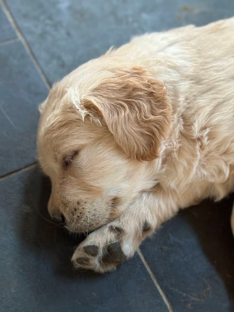 Gisterenavond bleven de pupjes lang wakker, maar vandaag werd dat dubbel en dik ingehaald: overal slaperige snuitjes, zachte dutjes tegen mama aan en languit soezen op de vloer. Af en toe een geeuw, een klein knuffelmomentje… en dan weer terug naar dromenland.